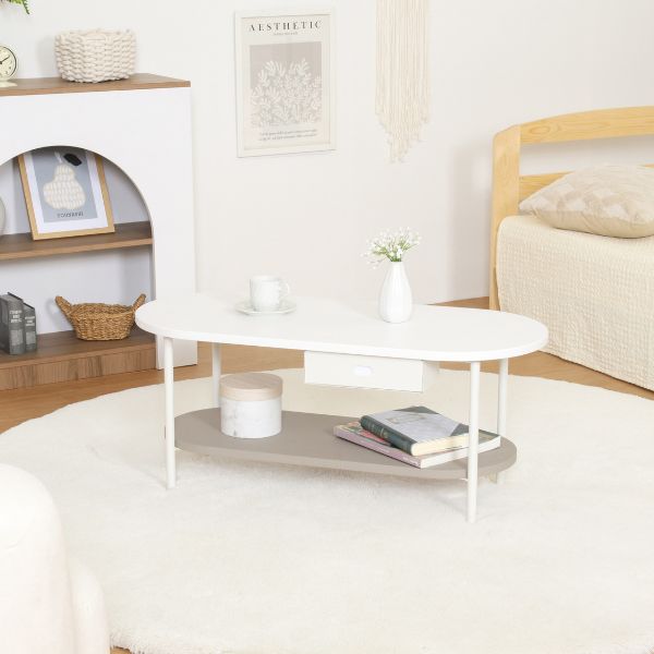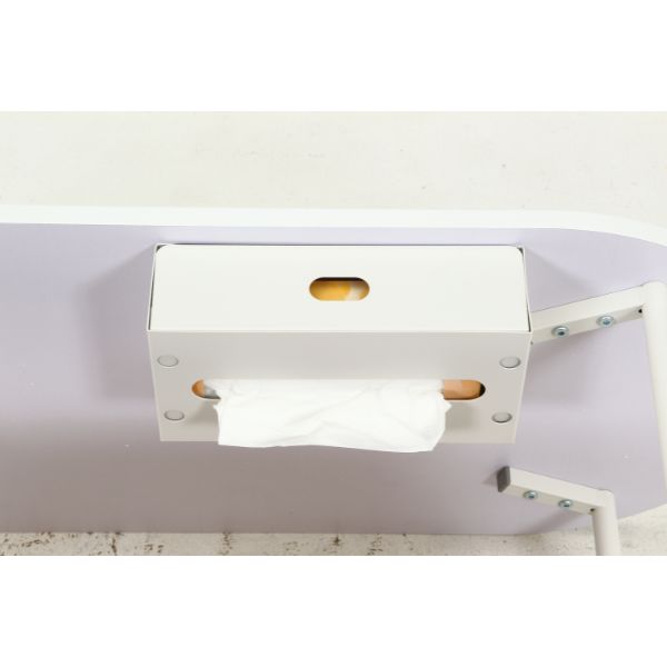 ●素材:構造部材(天板・棚板):合成樹脂化粧繊維板(MDF)、構造部材(脚部・ティッシュ収納):金属(鋼)、表面加工(脚部):粉体塗装(エポキシ樹脂塗装)