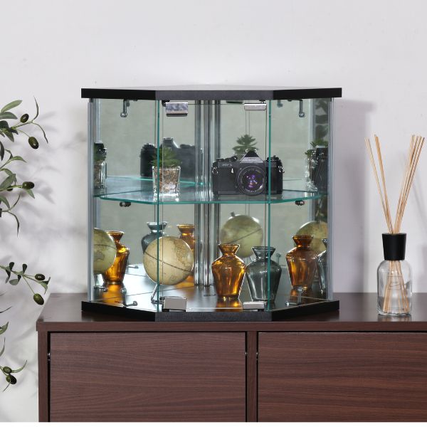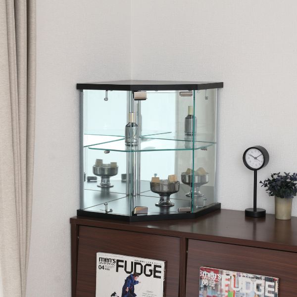 スペースを活用したコーナー型卓上ガラスコレクションケース