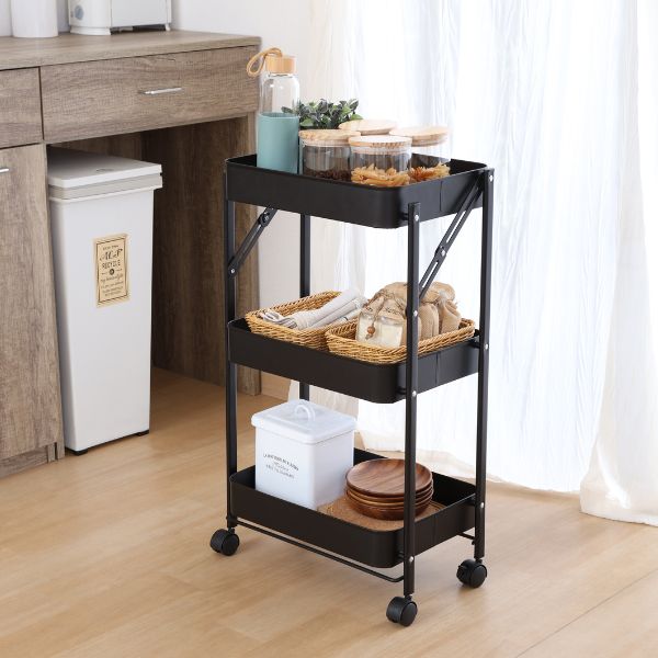組立て楽な折畳めるワゴンスパークブラック