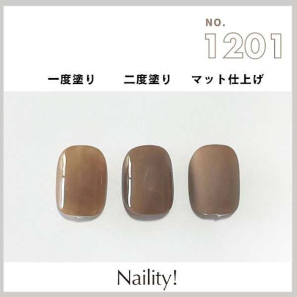ラウンド型のハケが一体型のボトルで操作性がいい。ソークオフタイプでリムーバー(アセトン)を使えば簡単にオフが可能。黄みを帯びたマット感が、肌をきれいに見せるブラウン。