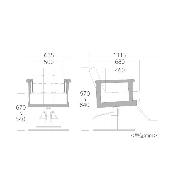●サイズ:幅635×奥行1115×高さ840〜970mm