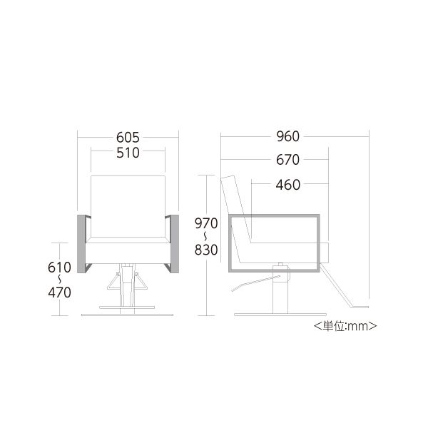 ●サイズ:幅605×奥行960×高さ830〜970mm