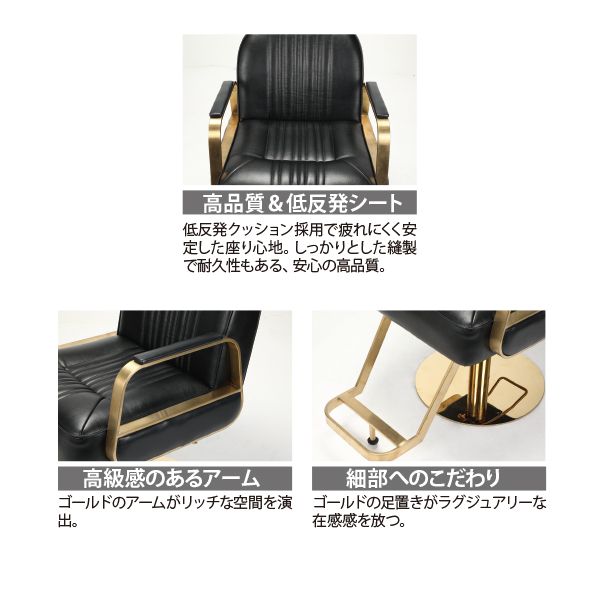 座面と背もたれに施されたスタイリッシュな縦ラインとゴールドの縁が、上品で高級感漂うスタイリングチェア。