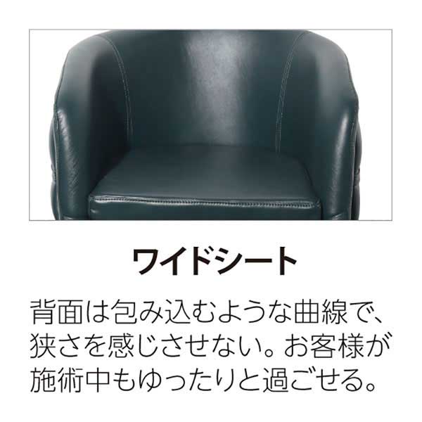 背面は包み込むような曲線で、狭さを感じさせない。お客様が施術中もゆったりと過ごせる。
