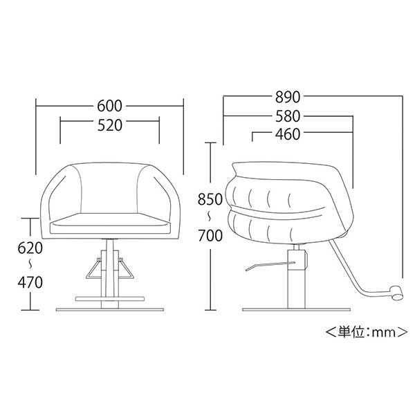 ●座高:470〜620mm