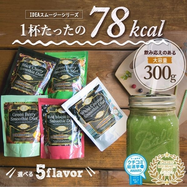ほのかな甘みのココナッツヨーグルト味の粉末タイプのグリーンスムージー。
