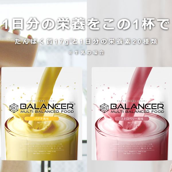 コップ1杯で20種類の栄養1日分をしっかり摂れるバナナ風味。