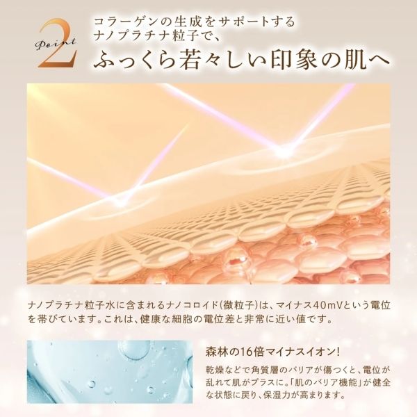 ●成分: 水、加水分解コラーゲン、ペンチレングリコール、白金、ヒト幹細胞順化培養液、アスコビルメチルカルニボニルペンタペプチド-72-トリ-t-ブチルトリプトファナミド、BG、トリ(カプリル酸/カプリン酸)グリセル、水添レシチン、1,2-ヘキサンジオール、ポリソルベート80、クエン酸、エチルヘキシルグリセリン、トコフェロール"