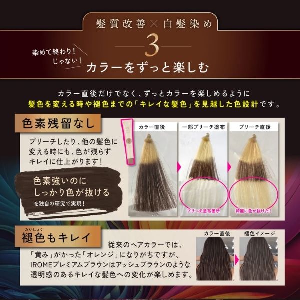 カラー直後はもちろん、カラーチェンジや褪色まで楽しめる色設計。黄・オレンジになりにくい。