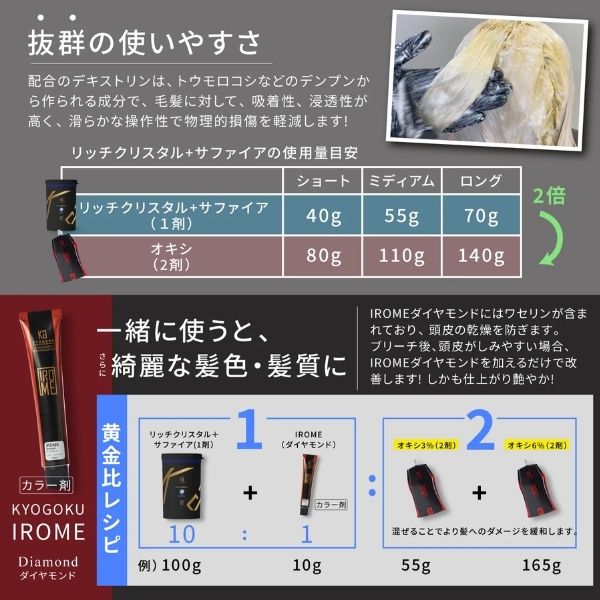 より美しい「白」へハイトーンを作る高性能ブリーチ。