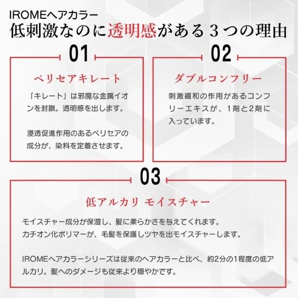IROMOヘアカラーと相性がいい、低アルカリ高彩度の色味が特徴のIROMOヘアカラーを素早く塗れる