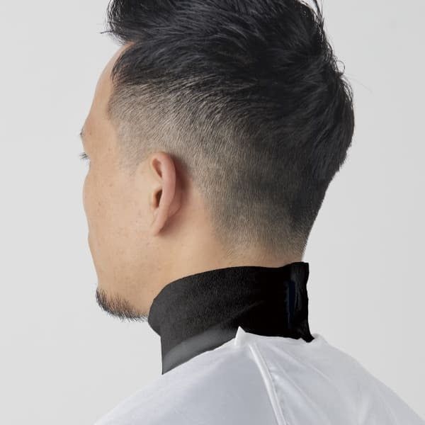 接着して固定できるので、ズレにくくフィット感を保ち、毛が首の中に入るのを防ぐ。