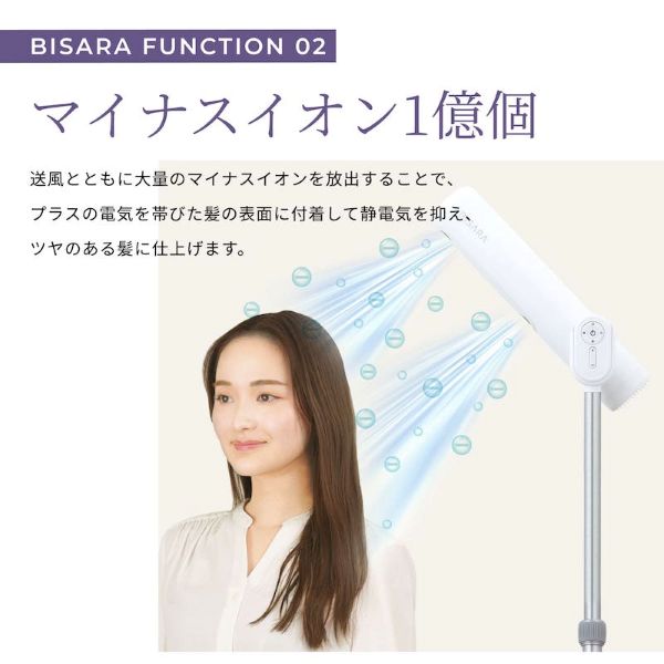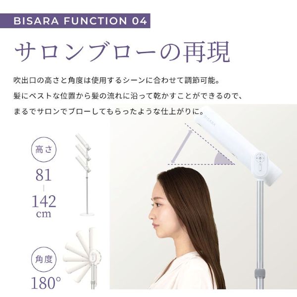 BISARAの「美髪モード」は温風・送風を交互で送風することで、髪へのダメージを抑えてやさしく乾かし、艶やかでまとまりのある美髪に仕上げる。