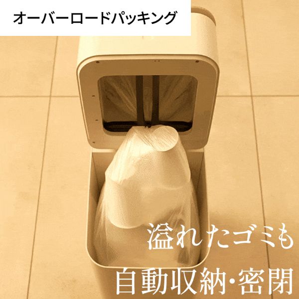 ゴミ箱からゴミが溢れてしまっていても、その状態のままタッチボタンを長押しで自動で収納・密閉梱包することができる。