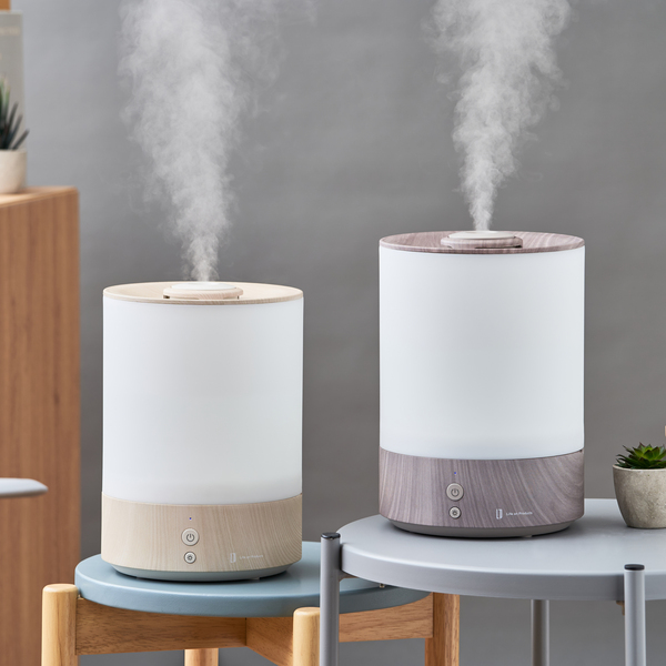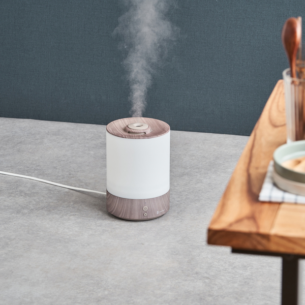 リアルな木目柄がインテリアに自然と溶け込む、スタイリッシュな加湿器。
