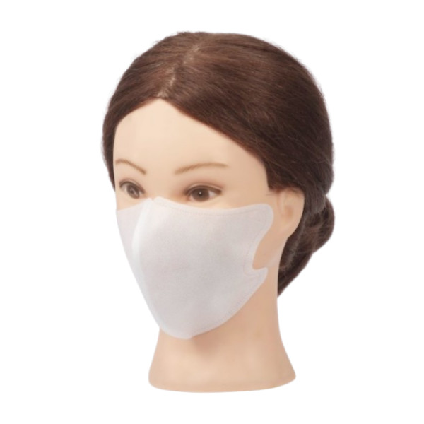 3Dタイプでやさしくお顔をつつ込む仕様。シールタイプなので、施術中にマスクが動きにくく、気になりにくい。