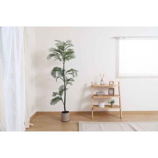 繊細な印象のジャカランダをモチーフにしたフェイクグリーン。お店の雰囲気をやさしくチェンジ。160㎝とスラッとした印象。