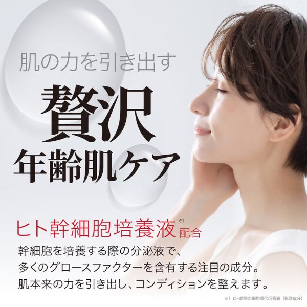 「ヒト幹細胞培養液」(ヒト臍帯血細胞順化培養液)配合。