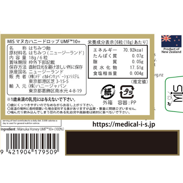 UMF蜂蜜協会の厳しい検査をクリアしたマヌカハニーを、水飴や砂糖、添加物を一切使わずに100%固形化。