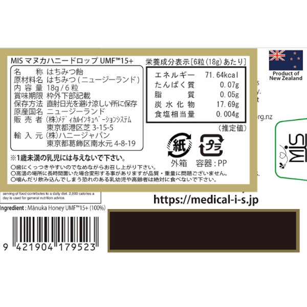 *MIS マヌカハニードロップUMF15+ 6粒(18g)