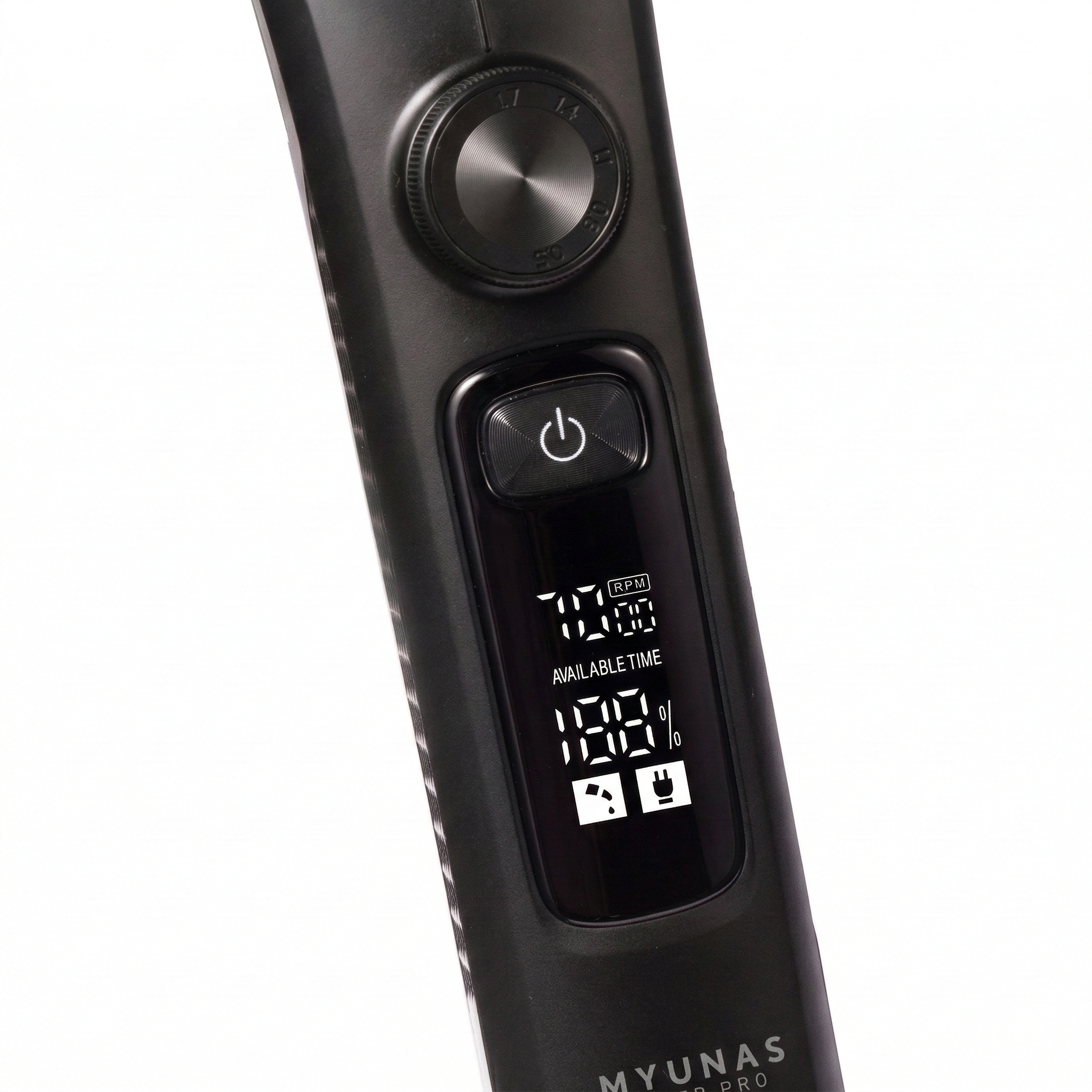 2段階モーターの調整力とセラミック刃の鋭さ。150分連続稼働のタフネスを、手に馴染むスリム形状に凝縮。