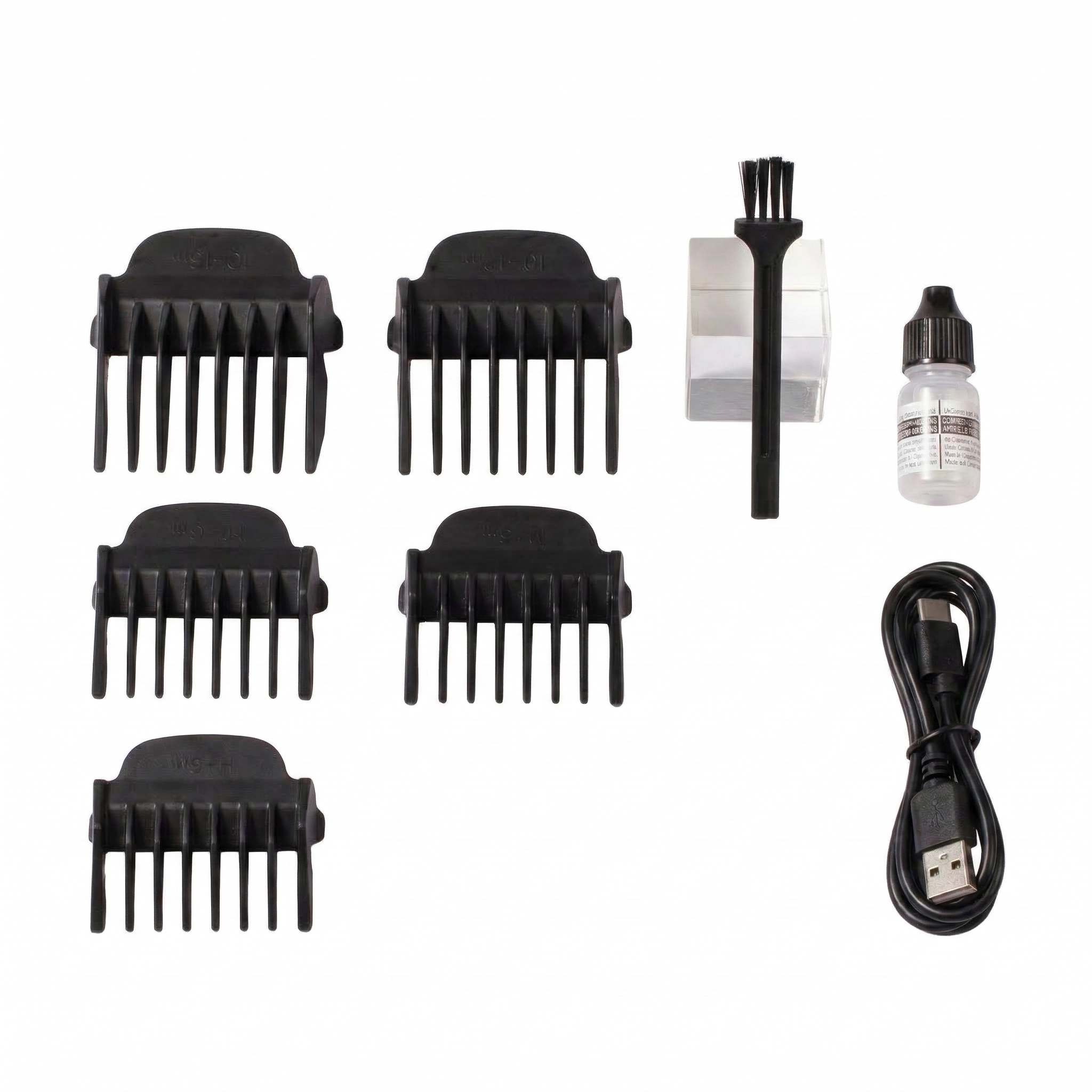 ●付属品:アタッチメントコーム1-3mm / 4-6mm / 7-9mm / 10-12mm / 16-18mm、 清掃ブラシ、充電ケーブル(タイプC)、オイル