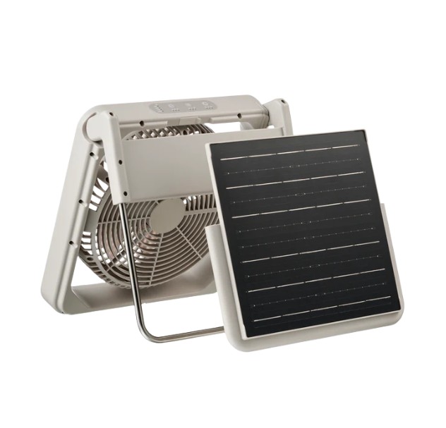 太陽光での充電が可能な、持ち運びに便利なコードレス扇風機