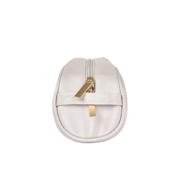 ジッパーが大きく開き、出し入れがスムーズ。旅先や外出先の限られたスペースでもストレスなく使用可能。