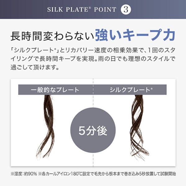 髪の水分蒸発を抑え、キューティクルを傷めず艶やかな巻き髪を実現。