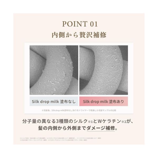 Feature 01:内側から贅沢補修→3種シルク×Wケラチン※1