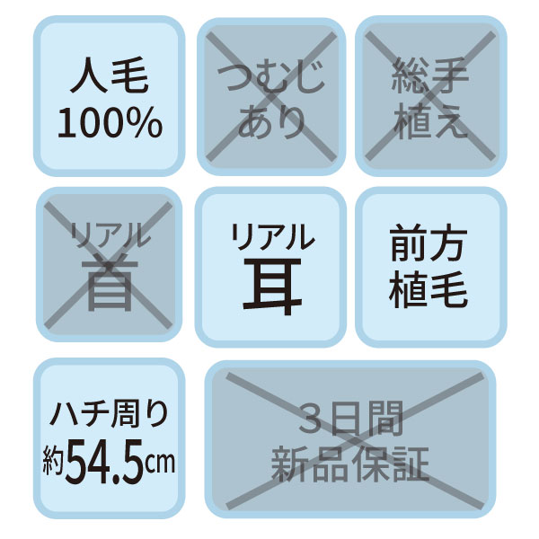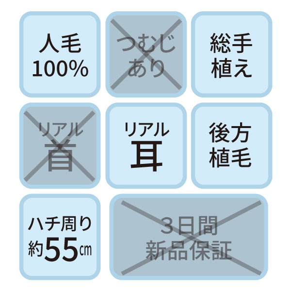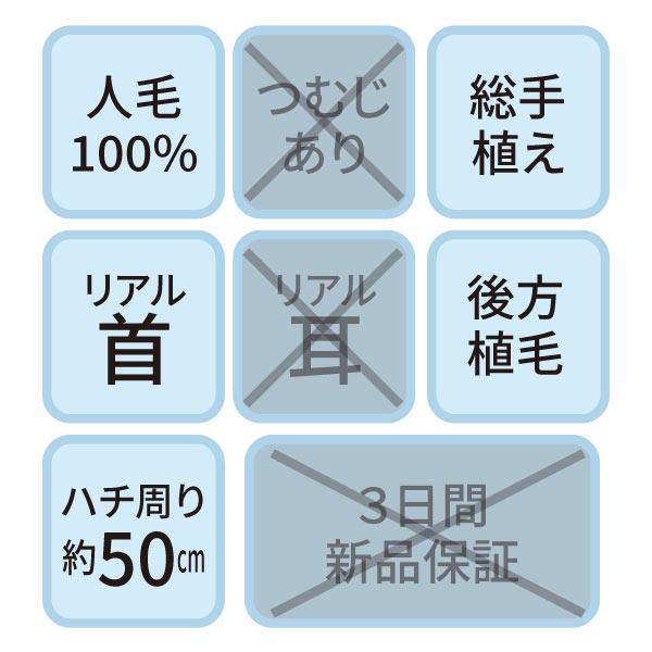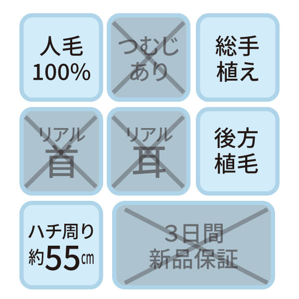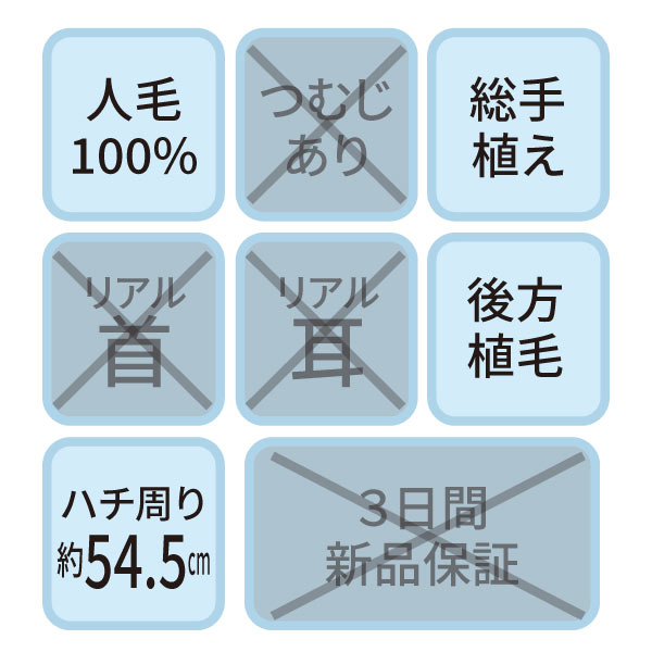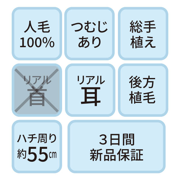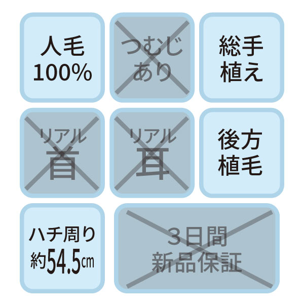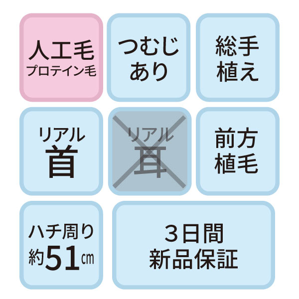 カットウイッグ SK-500 自然色(メイク無しタイプ・人工プロテイン毛)【3日間新品保証付】