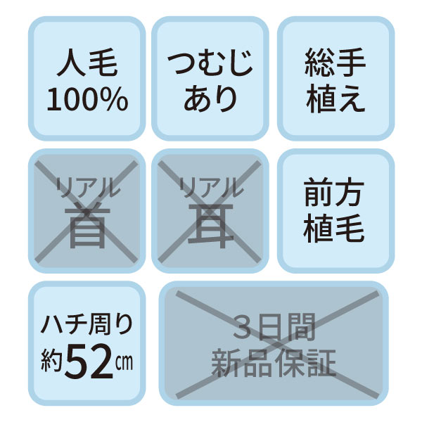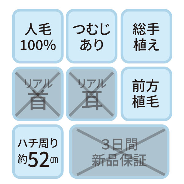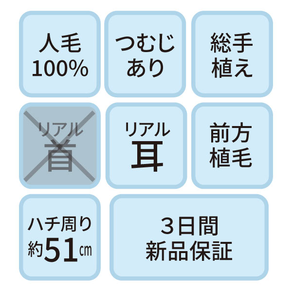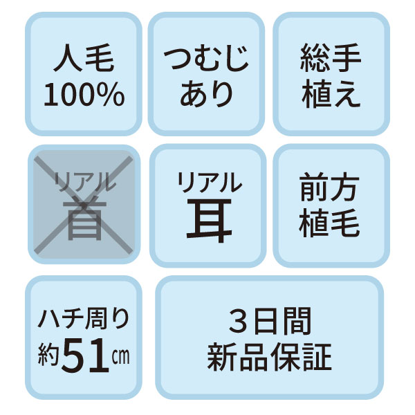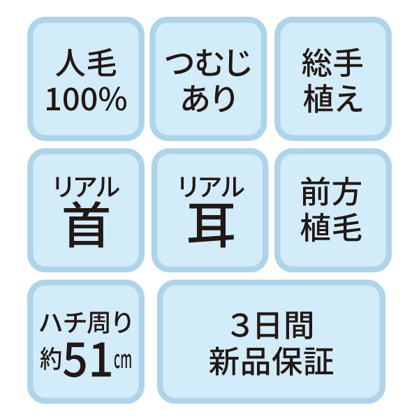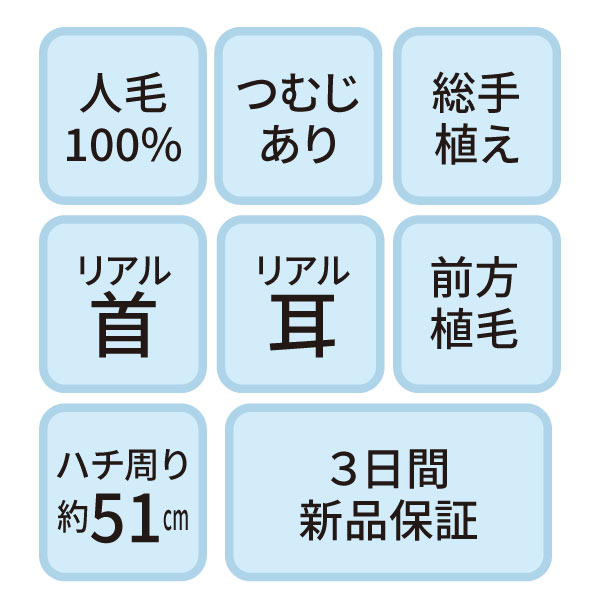 NA-300 セットアップ用ウィッグ (メイク無しタイプ・人毛100%)【3日間新品保証付】