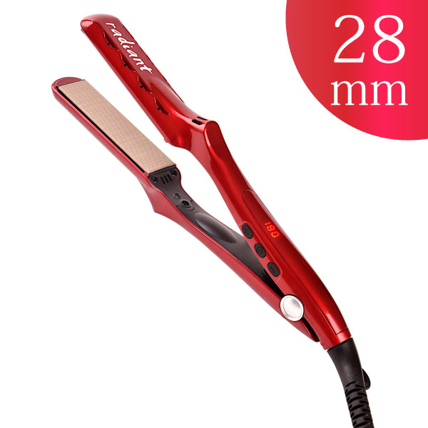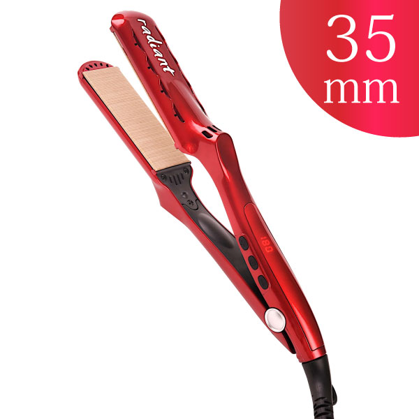 従来のヘアアイロンはセンサーを使い、ヒーターの温度を拾ってからICに反映し、それから温度制御指示を出します。ラディアントは「センサーレス」で、ヒーター自体が精密センサーとなり、百万分率の抵抗温度係数をICが管理するため、温度の上昇を早くすることを可能にしました。そのため、指定温度で精密に制御ができます。※一般的なヘアアイロンとの比較。※自社調べ
